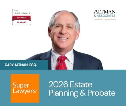 We are honored to announce that Gary Altman, Esq. has been recognized by Maryland Super Lawyers 2026 for his experience in Estate Planning and Probate. This year is particularly special as it marks a 20-year milestone of consecutive recognition for Gary’s dedication to his clients and the legal community. We extend a sincere thank you to our peers and colleagues whose support has made this enduring achievement possible.